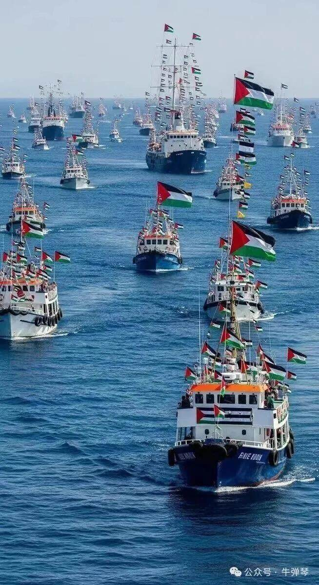 40多条渔船、游艇,载着加沙急需的药品、粮食等紧急物资,浩浩荡荡驶向加沙海域,试图突破以色列的海上封锁。
