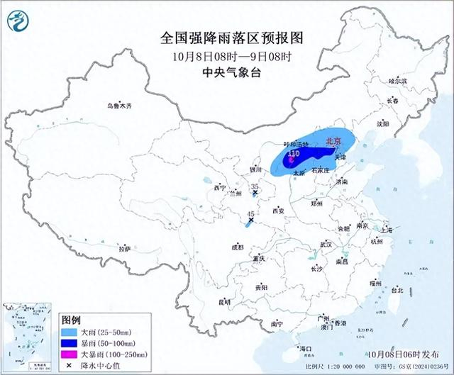 中央气象台8日6时发布暴雨蓝色预警:预计8日8时至9日8时,陕西北部、内蒙古河套地区、山西中北部、京津冀以及四川东北部、甘肃东部、宁夏南部等地的部分地区有大到暴雨,其中陕西北部、山西西北部局地有大暴雨。