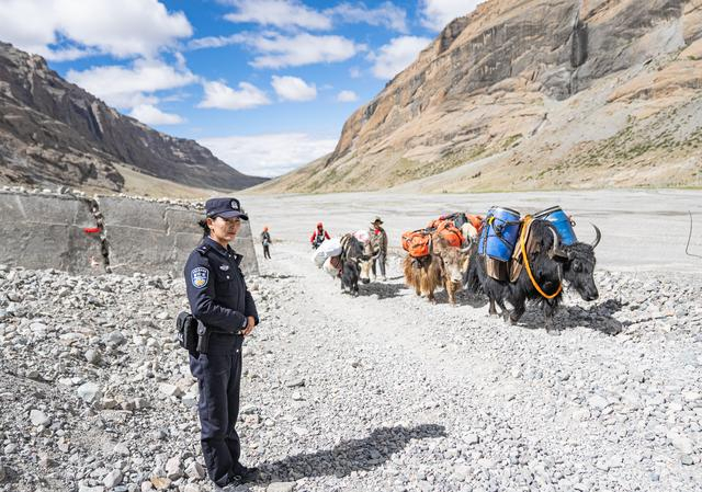 2025年6月23日,西藏阿里地区塔尔钦边境派出所民警巴桑普赤在冈仁波齐转山徒步道上执勤。新华社记者 丁增尼达 摄