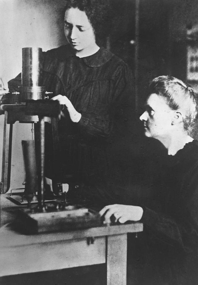 居里夫人(右)在指导女儿伊伦·居里进行科研工作。新华社发
