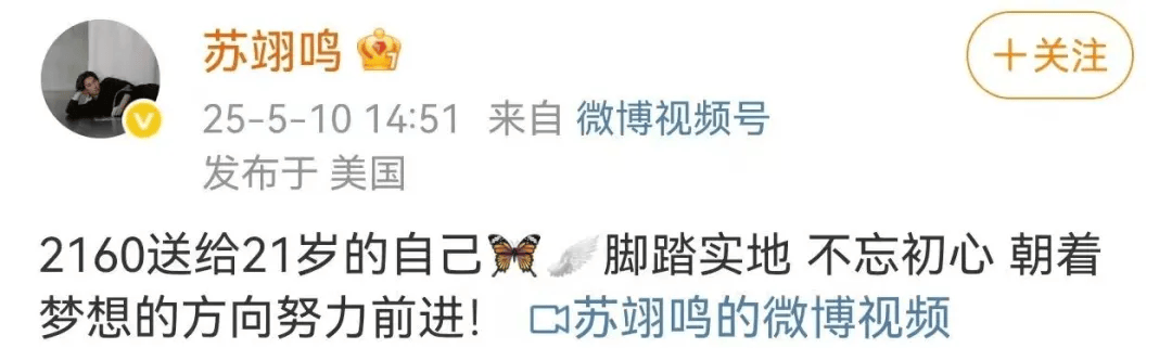 当天,苏翊鸣晒出视频并配文:2160送给21岁的自己,脚踏实地,不忘初心,朝着梦想的方向努力前进!