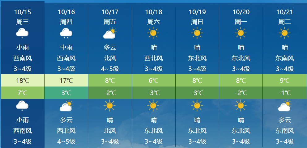 另外,10月16日至19日,随着冷空气的深入,全区各地风力将明显增大,多地有4、5级短时6、7级大风,风寒效应明显。