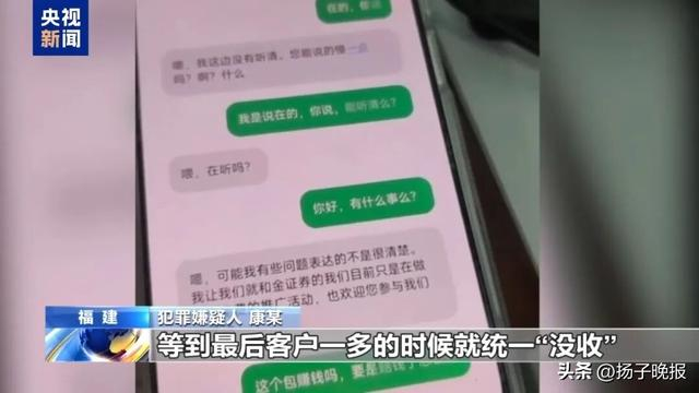 犯罪嫌疑人 康某:看到盘口金额不怎么大,我就提了几点建议给他们。采取一种拉群的方法,把所有加的客户全部拉到一个群里面,模式跟传销一样。包装、引流、拉群、下载App,等到最后客户一多的时候就统一“没收”。