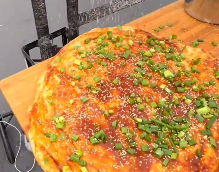 小唐今年30岁,初中学历,曾在国内卖过酱香饼,做过销售、地推、汽车行业,2022年,不会英语的他独自赴美闯荡,两年后定居洛杉矶,敏锐意识到这里酱香饼的商机,“第一个月卖了大概2.4万美金,换成人民币约17万元,那时候感觉机器就是印钞机,一盖一开一出货,60美金就到手了。”参考澳洲酱香饼的价格,小唐给其定价为60美金一张,10美金一份。成本不算高,估计是营业额的零头。食材成本是比较低的,我师傅在国内一张饼才卖6块钱,主要是人工和其它的一些费用。
