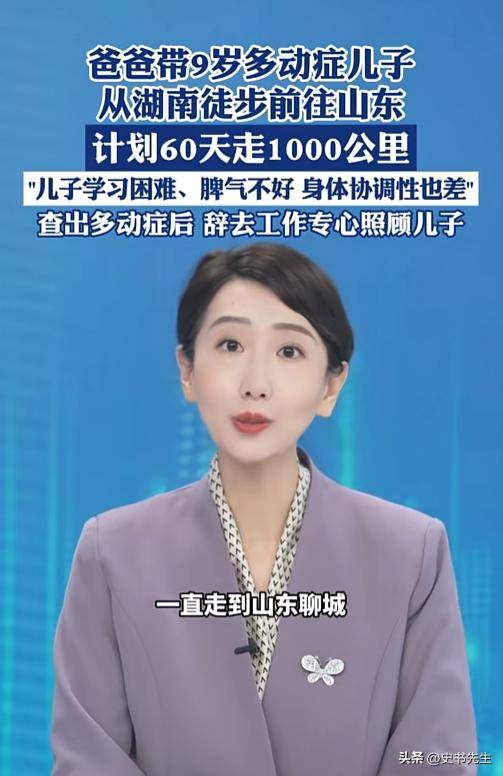 据悉,这位爸爸带着儿子从湖南慈利出发,一直走到山东聊城,10月1日国庆的时候才正式出发的,此前孩子就被查出来有多动症。