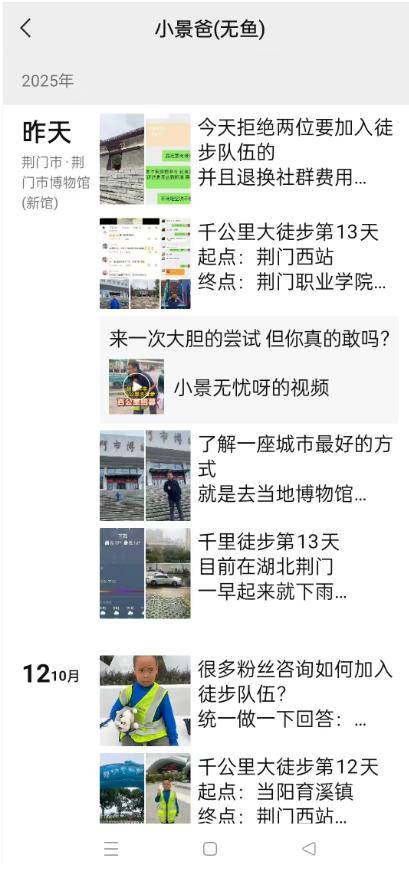 “中午小景关车门,误伤另一个小朋友,导致一些小矛盾……”“路过白龙村晒衣服,遇见村支书,还送我们刚摘的橘子,三个孩子相处很愉快……”“有朋友说我们坚持不了三天,确实!面临的困难太多……”“孩子的路上乐趣相当丰富,采蘑菇,捡橘子。最离谱的是在山区,前不着村后不着店,竟然成功蹭上了婚礼宴席了,主人家热情招待我们,临走还送了一大包橘子。”徒步以来,余先生每天在朋友圈记录了孩子的成长细节,徒步过程中的温暖经历,以及自己的所感所想。