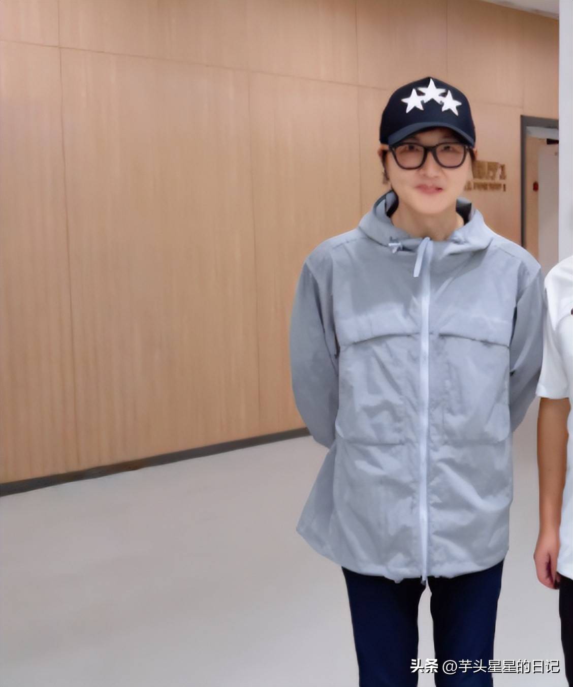 今年7月后台照曝光:白衬衫配垂感黑西裤,标志性黑框眼镜。暴瘦的身形引发热议——头身比失调被戏称”大头娃娃”,粉丝忧心健康亮红灯。